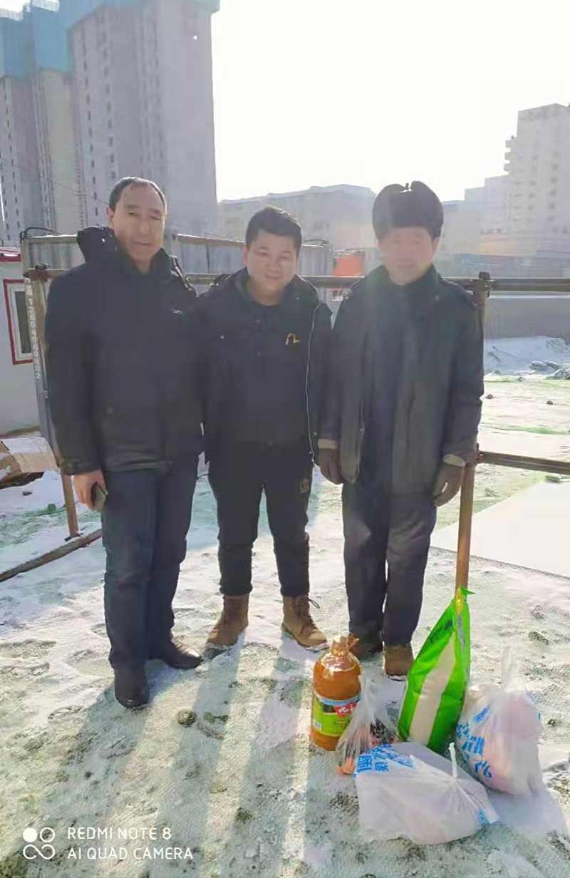 春節將至,所有工程項目均已停工,為了項目的春節期間的安全,每個項目都留有2名同志值班。2月19日上午,領導班子主要成員深入各項目,看望、慰問春節期間依舊奮戰的一線員工,為他們帶去春節禮物和新春祝福,為員工帶來溫暖。