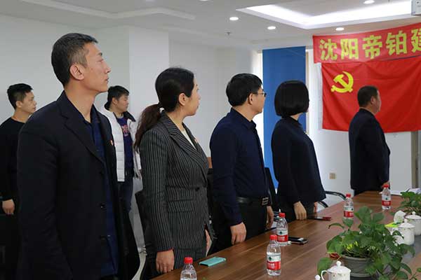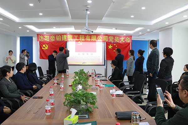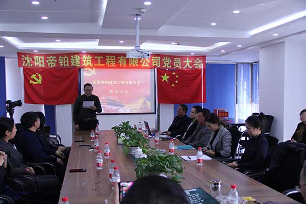 2019年01月10日上午09:30,沈陽帝鉑建筑工程有限公司在公司會議室召開黨員大會,參加會議的有:皇姑區委組織部副部長何長江同志、皇姑區基層黨建工作第二指導站站長徐穎同志、皇姑區非公促進會會長田永強同志、三臺子功能區黨工委副書記宋新同志、航院社區副書記周鵬飛同志、區工商聯秘書長姚成順同志、非公黨建促進會會員等各位領導,會上黨委批準成立沈陽帝鉑建筑工程有限公司黨支部,并投票選舉支部書記由孫常學當選。會上,區組織部何部長做重要講話,對沈陽帝鉑建筑工程有限公司黨支部成立表示祝賀同時強調帝鉑黨支部一定做好,做優,做強。
