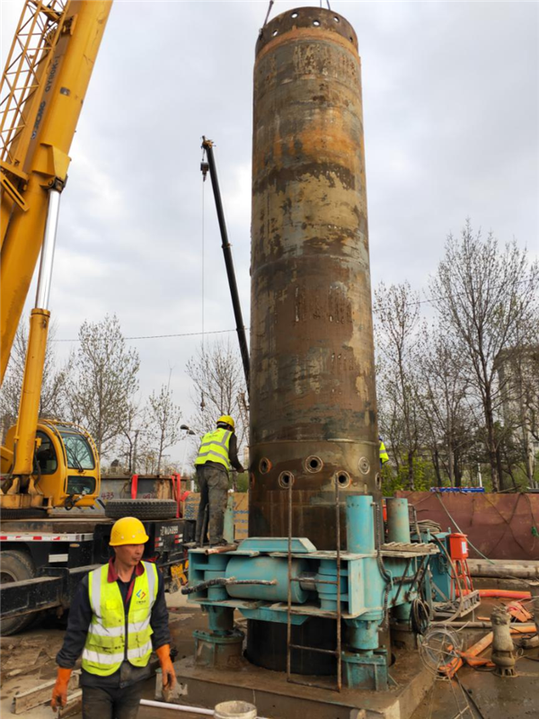 120噸履帶吊2臺、70噸汽車吊1臺、25噸汽車吊1臺。全套管全回轉鉆機下壓鋼套管施工,鋼套管下壓至地鐵隧道底板以下5米。