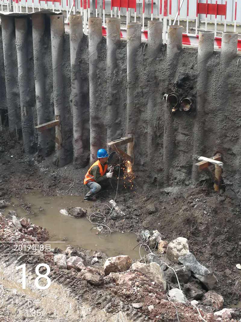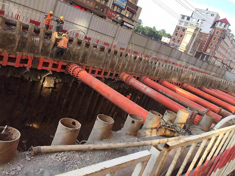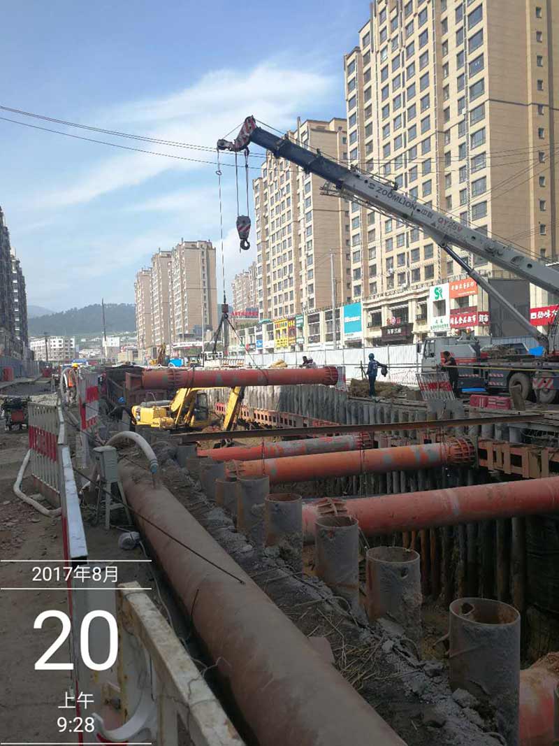 新華大街管廊基坑支護方案由我單位負責編制及施工,最終方案定位φ273*7鋼管樁+φ609*15鋼支撐為主導的支護體系。φ273*7鋼管樁長12米,間距0.5米。