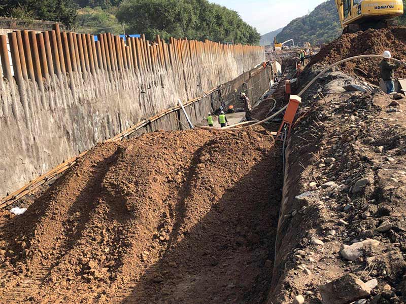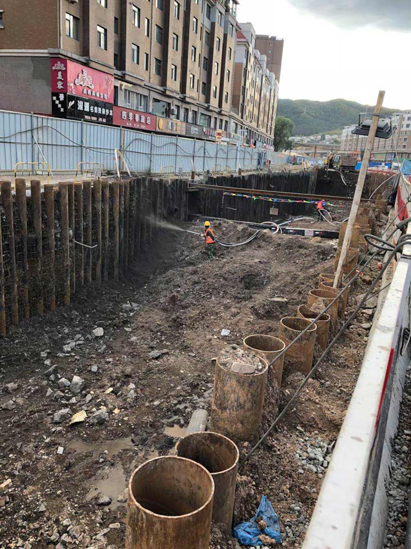 通化大街管廊K8+140-K7+710,共計430米,位于通化市與通化縣交界處,是通往通化縣唯一道路。采用φ273*7鋼管樁+錨索腰梁支護體系。