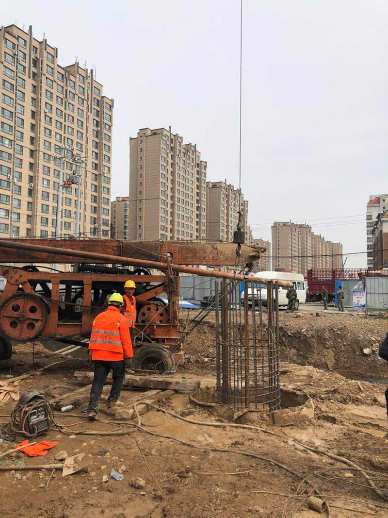 降水井采用φ219橋式濾水管,井深12米,井間距為10米。橋式濾水管濾水性高于普通的無砂水泥管。排水管線采用φ400*6螺旋鋼管。水泵功率為25KW.h,水泵揚程30米的潛水泵。降水井施工步驟:273鋼管樁施工→橋式濾水管纏紗布→下橋式濾水管→拔出273鋼管樁。